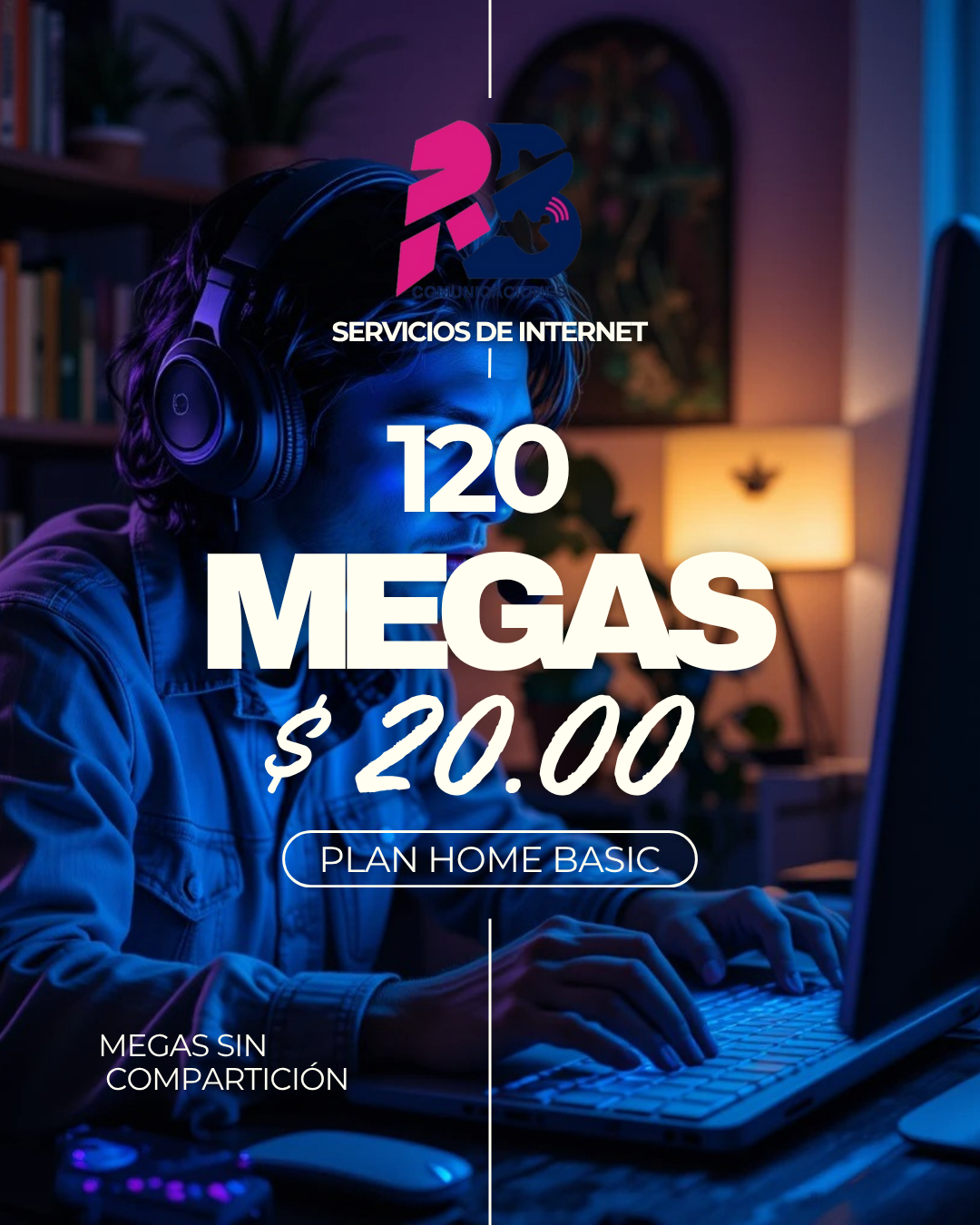 Por 20$ dolares, 120 megas sin compartición, podrás trabajar, estudiar y disfrutar de contenido en alta definición.
