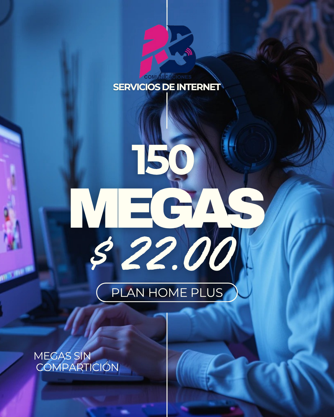 Por 22$ dolares 150 megas sin compartición, obtén velocidad y rendimiento para streaming, juegos en línea y trabajo remoto.