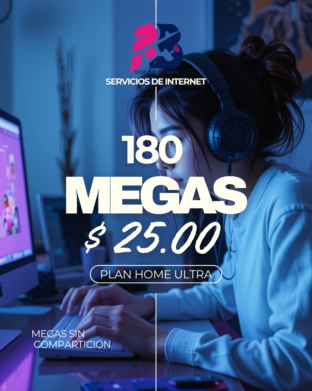 Por 25$ dolares te ofrecemos 180 megas sin compartición, ideales para gamers, teletrabajo y transmisiones en 4K.